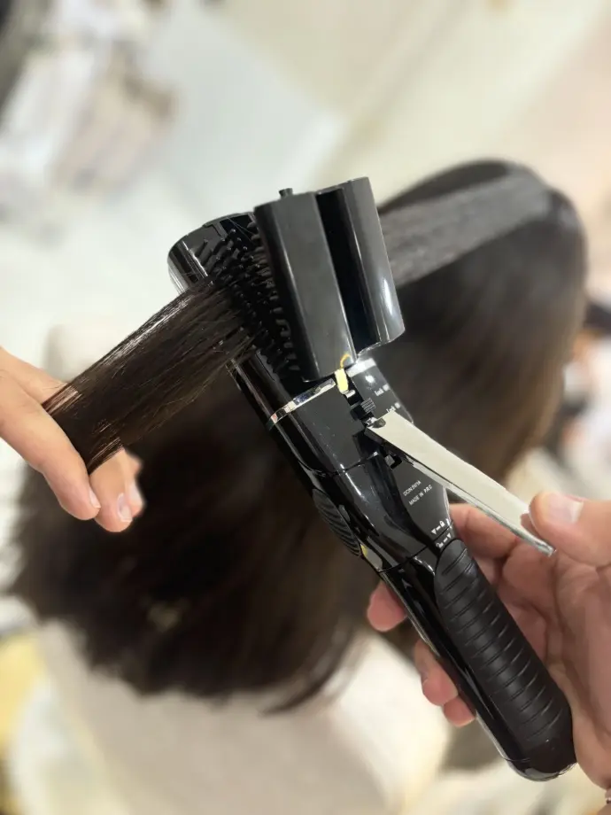 - Aplicación de protector térmico para cuidar el cabello durante el estilizado.